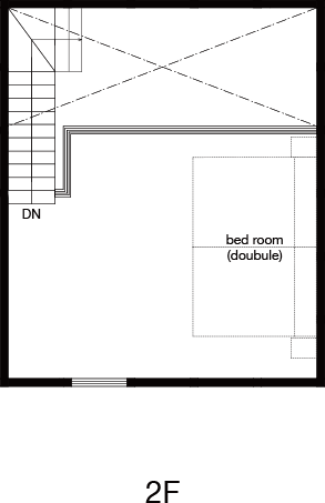 Room 3 42㎡, capacity 4 persons, 2 beds (double) and 1 sofa bed, maisonette type